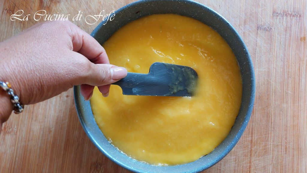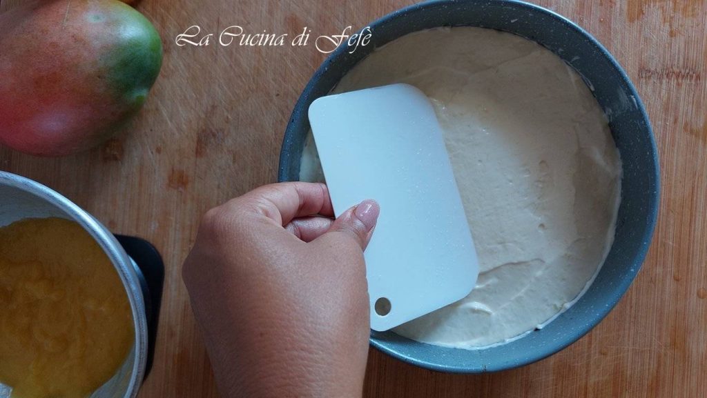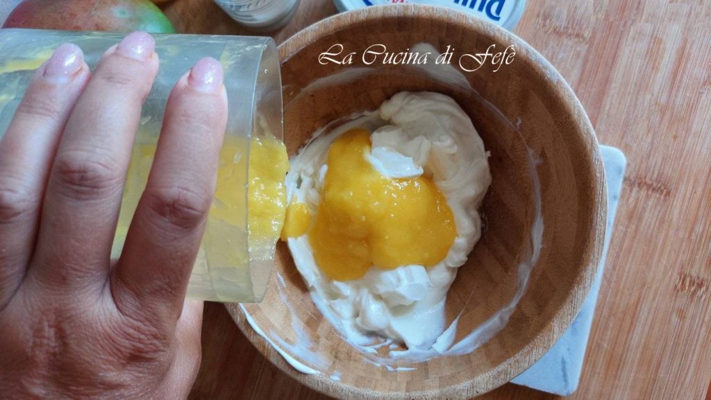 • Voeg het toe aan de 50 gr. gepureerde mango die je opzij hebt gezet en meng goed met een spatel.