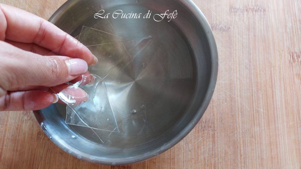 • Ondertussen, week 4 gr. gelatineblaadjes in koud water voor 10′.