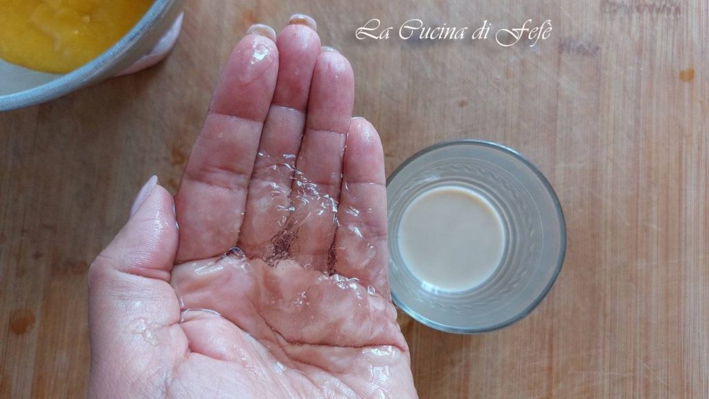 • Na de weektijd, knijp de gelatine goed uit met je handen.