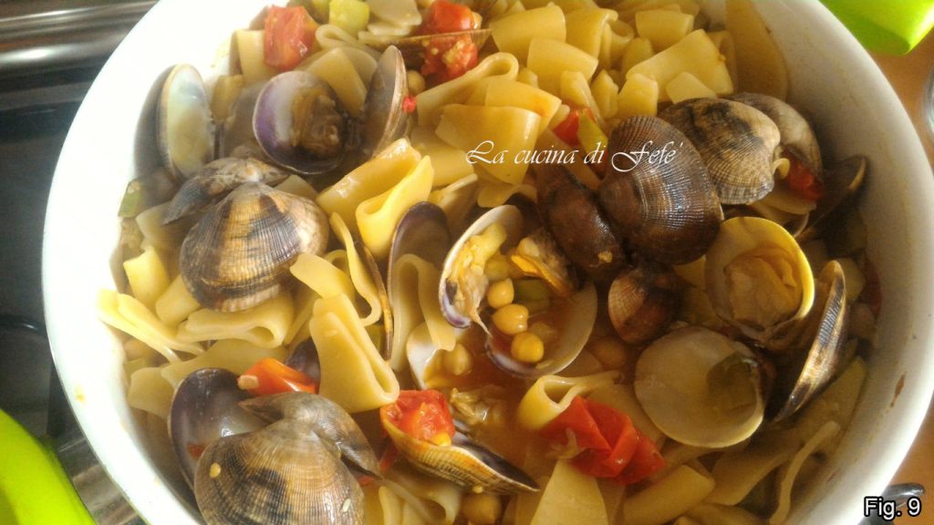 Voeg de fork pasta toe aan de saus en ga verder met koken op hoog vuur, af en toe roerend (fig. 9).