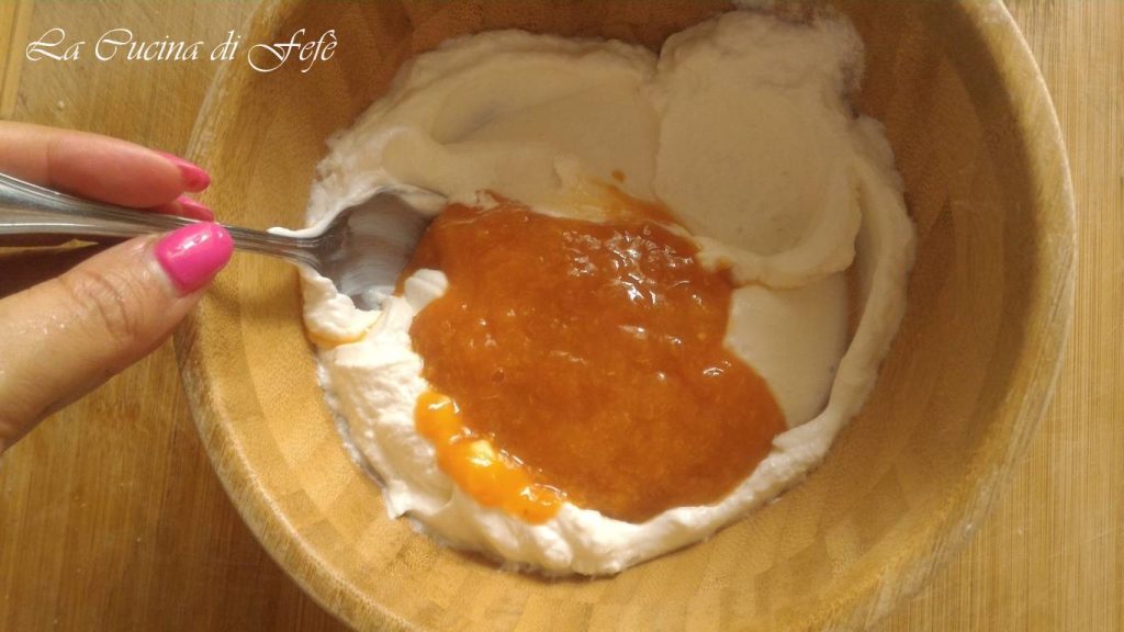 In een grote kom, meng de Griekse yoghurt met de abrikozenpuree met behulp van een spatel.