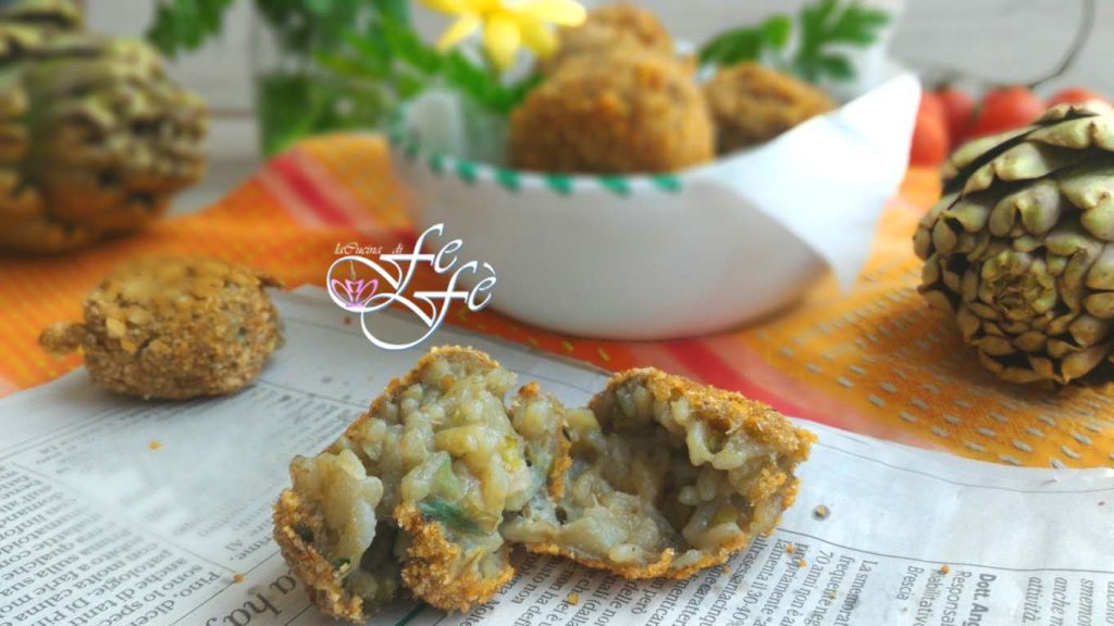Heb je ooit de koelkast geopend en geen idee wat je moet koken? Misschien zonder veel ingrediënten, en je moet nog boodschappen doen, dan wordt het bereiden van een diner een lastige taak! Ik geef je een tip, voor het geval je nog wat risotto over hebt, zoals bij mij het geval was! Volgens het motto gooi niets weg, hier is een heerlijke manier om vrienden en familie te verrassen! De ris arancinetti had ik ook improvisatie arancini kunnen noemen, want op een avond was het precies zo! De situatie was kritisch: de koelkast was zo goed als leeg, slechts één ei en wat geraspte pecorino. Ik raapte samen wat ik had, amper bewust van het buitengewoon goede resultaat dat ik zou behalen! In een paar eenvoudige stappen heb je een slimme, snelle en smaakvolle recept klaar! Het deed me denken aan de goede tijden, toen ik met mijn man op de hoofdstraat van Catania liep en we stopten bij een van onze favoriete bars om warme arancini te kopen! Mijn versie is natuurlijk gebakken, dus gezonder, maar niet minder lekker. Binnenin een risotto met artisjokken en erwten, op smaak gebracht met goede geraspte pecorino, om vervolgens door het ei te worden gehaald en gepaneerd! Een lekkernij! Ze zijn geweldig als fingerfood voorgerecht of ook als vegetarisch hoofdgerecht met een frisse salade. Eenmaal gemaakt, blijf je ze maken!