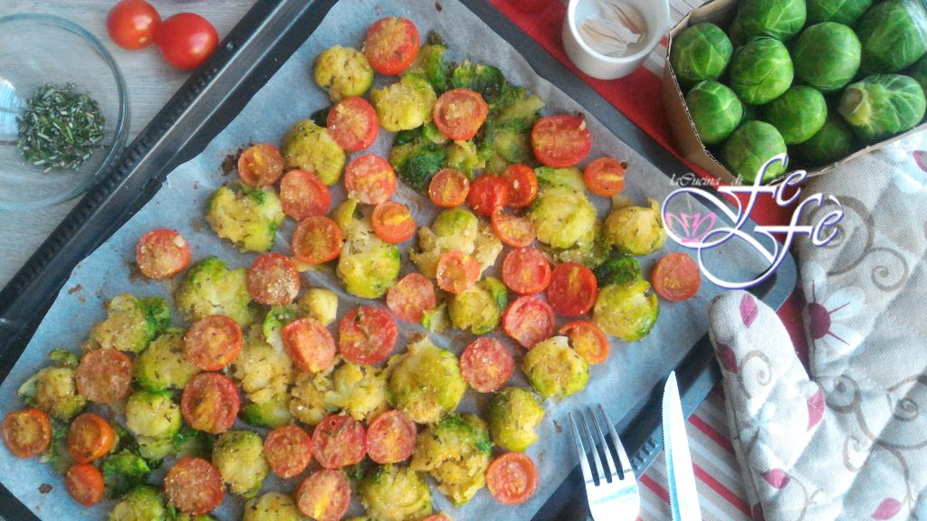 👉De geprikte spruiten met gebakken kersentomaten kunnen in de koelkast worden bewaard in geschikte containers tot 3-4 dagen. Ze hoeven dan alleen maar 5′-6′ in een voorverwarmde oven om weer warm en knapperig te worden of 2′ in de magnetron.