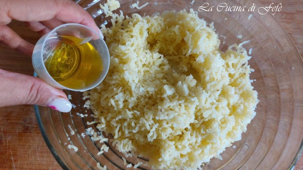 • Was de aardappelen goed onder stromend water, plaats ze dan in een pan en kook ze in gezouten water voor ongeveer 20′ vanaf het moment dat het water kookt. De tanden van een vork moeten er gemakkelijk in kunnen.
