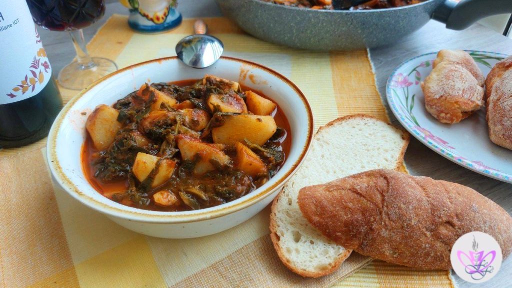 Gezien de seizoensperiode, ben ik de meest bekende groente uit mijn regio aan het inslaan, die zeer gewaardeerd wordt zowel om zijn heilzame eigenschappen als om zijn smaak: de trunzu kool van Aci, oftewel de knolraap van Acireale! Deze groente, met zijn unieke kenmerken, kan zowel rauw, zoals in de salade van trunzu kool, als gekookt worden genoten. In het eerste geval wordt de groente in julienne gesneden en op smaak gebracht met olie, zout, peper en azijn of, als vervanging, citroensap. In het tweede geval wordt het vaak gebruikt als ingrediënt voor de beroemde pasta met trunzu kool of pasta met sardines, of gestoofd (stufateddu) als simpel bijgerecht. Deze laatste versie is precies het recept van vandaag en, als je mijn tips volgt, zet je een gerecht uit de Siciliaanse culinaire traditie op tafel! Serveer het dampend met een scheutje rauwe olie en enkele sneetjes geroosterd rustiek brood of crostini naar smaak, en het zal perfect zijn voor elke gelegenheid! Je kunt het combineren met je tweede gangen van gegrild vlees of als topping voor de beroemde Siciliaanse scacciata. Een vegetarisch gerecht met een rijke en intense smaak, dat authenticiteit, kwaliteit en echtheid weerspiegelt. Hier is het verplicht om te dippen, of zoals wij zouden zeggen, “het is lekker om het brood in te dopen“!