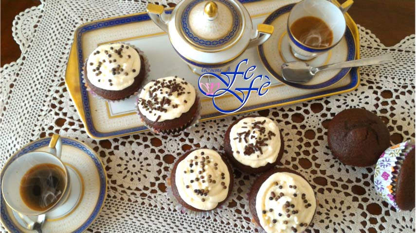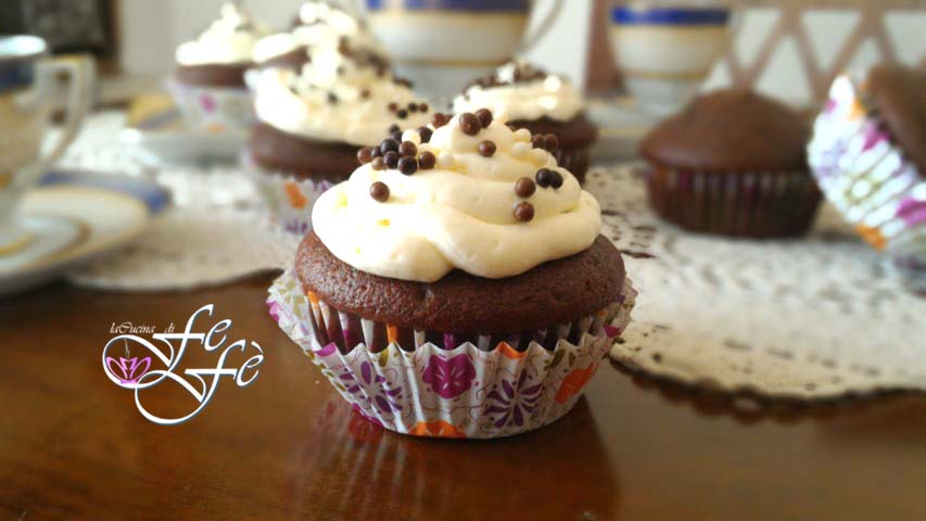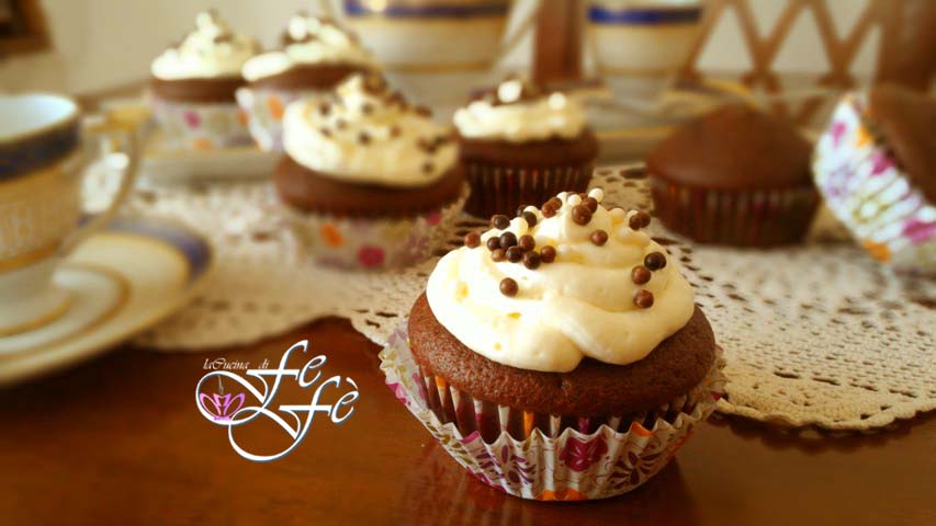 Ik ben altijd al dol geweest op de beroemde cupcakes, die kenmerkende en populaire zoete hapjes van Amerikaanse oorsprong zijn. Letterlijk worden ze “torta tazza” genoemd en worden ze gebruikt bij de thee tijdens heerlijke middagsnacks, maar sinds ze enkele jaren ook in Italië verspreid zijn, worden ze voor talloze andere feestelijke gelegenheden bereid. Wie heeft ze niet minstens één keer gemaakt? Ik geef toe dat ik er vaak van heb gesmuld met deze kleine heerlijke traktaties! Een tijd geleden maakte ik ze met een zeer delicate citroencrème die veel bijval kreeg en waarvan ik binnenkort het recept zal plaatsen. Ik ben ook van plan ze te maken met bietjes, voor een gegarandeerd succesvol “red velvet” effect! Intussen zijn die die ik jullie vandaag voorstel fantastisch. Een cacaobodem zo zacht als een wolkje, bedekt met een fluweelachtige en omhullende frosting van witte chocolade die contrasteert met de bitterheid van chocolade. Hap na hap is er niets bevredigenders! Ze zijn echt heel eenvoudig te maken en, gecombineerd met andere cupcakes van verschillende smaken en kleuren, zullen ze een werkelijk indrukwekkend effect hebben! Bovendien zijn ze ook glutenvrij, dus perfect voor mensen met coeliakie! Waar wacht je nog op om ze te maken?