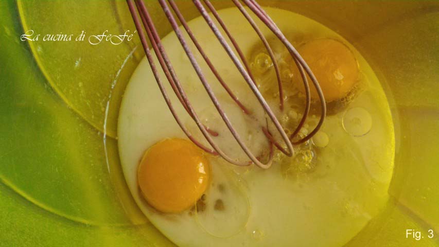 Smelt de boter au bain-marie en laat iets afkoelen. Giet deze in een ruime kom en voeg alle vloeibare ingrediënten toe, dus de eieren en de melk, en meng met een handgarde.