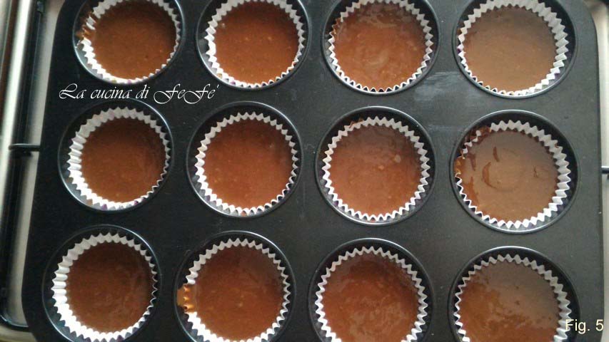 Zet de papieren vormpjes in een muffinvorm en vul ze voor 2/3, waarbij je ongeveer 1 cm tot de rand vrijlaat.