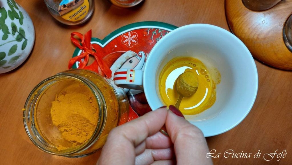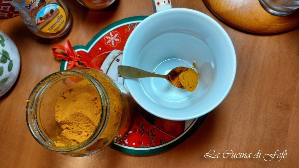 Plaats nu op de bodem van een mok een 1/2 theelepel kurkumapasta.