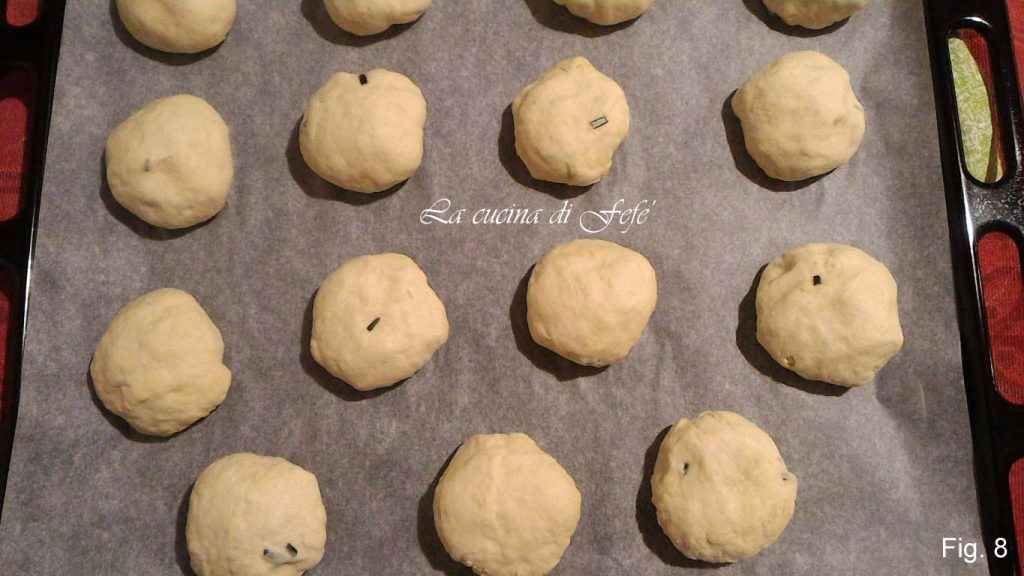 Sluit ze dan door een balletje te vormen. Ga op dezelfde manier door tot het deeg op is en leg de balletjes op een bakplaat bekleed met bakpapier (fig. 8).