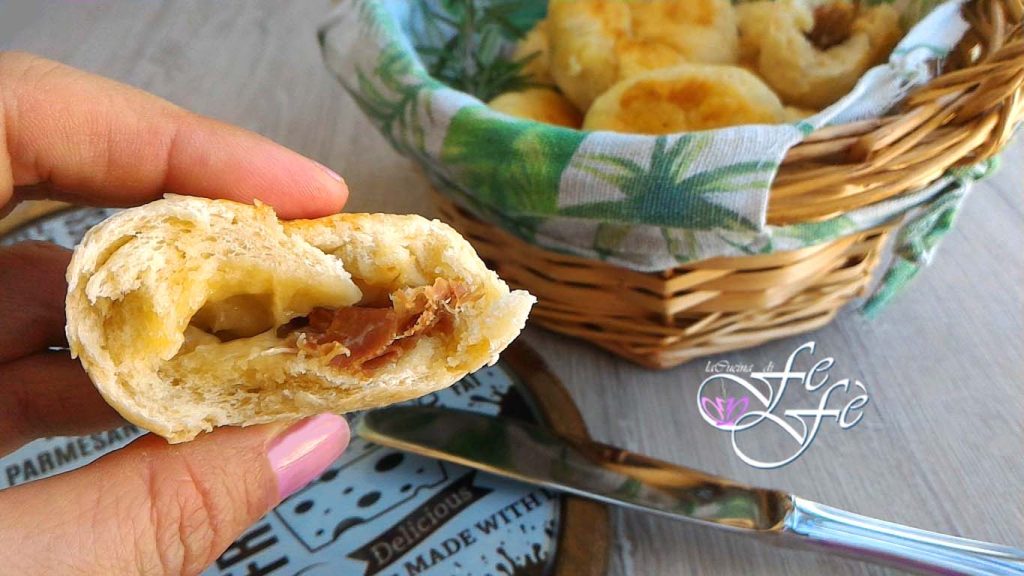 Voor degenen die ze niet kennen, zijn de pettole heerlijke gistdeegballetjes behorend tot de Apulische traditie, volgens welke ze tijdens de kerstperiode bereid moeten worden. Meestal zijn ze typisch zoet en worden ze gefrituurd. Nu hoop ik dat de Apulische mensen het me niet kwalijk nemen dat ik een hartige en in de oven gebakken versie heb voorgesteld! Ze zijn nog steeds erg lekker, het belangrijkste is om ze warm te eten, direct uit de oven, om ten volle te genieten van de zachtheid van het deeg en de heerlijke vulling van vleeswaren en kazen. Ze zijn een uitstekend voorgerecht, maar ze kunnen ook gewaardeerd worden als kleine en smakelijke broodjes om bij verschillende gerechten op tafel te zetten. Als eerste experiment ben ik tevreden, zelfs mijn schoonzus heeft haar goedkeuring gegeven, maar ik zal mijn best doen om ze opnieuw te bereiden, misschien de binnenvulling te veranderen, en dan opnieuw in zoete en gefrituurde versie zoals de traditie wil!