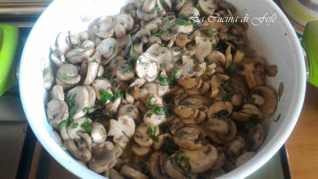 Voeg de gesneden paddenstoelen toe en laat koken op een laag vuur gedurende ongeveer 10′, terwijl je voortdurend roert.
