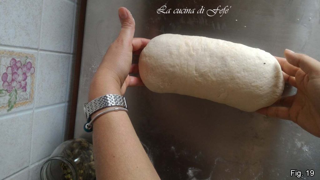• Leg het nog ruwe deeg op een licht met bloem bestoven werkvlak, maak er een homogeen deeg van, geholpen door een bankkaart.