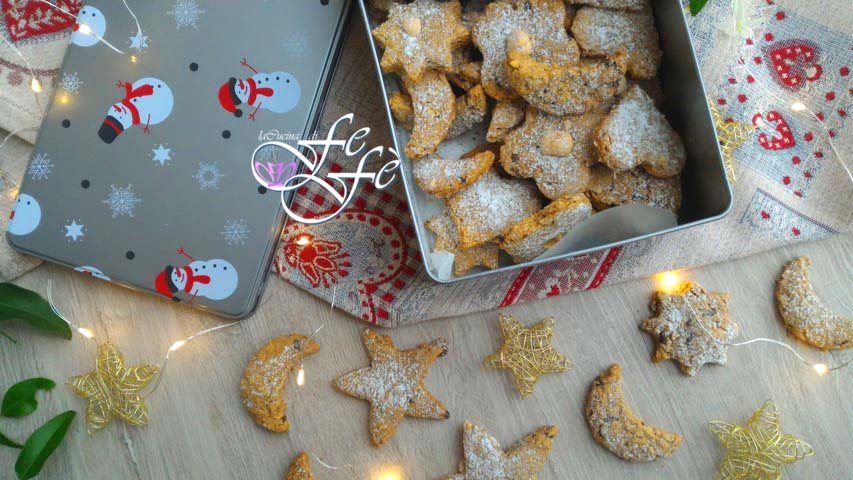 Ja, ik weet het, de feestdagen zijn inmiddels voorbij, maar ik kon mijn magische “sterrenhemel” toch niet voor jullie bewaren! Sterren en manen die ’s nachts oplichten, waar dromen en wensen ontstaan en uitkomen! Deze koekjes zijn een herinterpretatie van mijn oorspronkelijke basisrecept met kaneel, herinneren jullie je? Ze waren zó lekker dat ik ze wel vijf keer heb gebakken gedurende alle kerstdagen. Alleen wilde ik ze nóg verleidelijker maken door de kaneel gedeeltelijk te vervangen door extra pure chocoladestukjes, en het resultaat was ongelooflijk! Zo erg zelfs dat ik ze heb verpakt, versierd en uitgedeeld aan alle gasten van een oldtimerrit tijdens de kerstlunch, en zo werd ik de officiële sponsor van het evenement. De feedback was mijn grootste voldoening en ik geloof echt dat deze koekjes, samen met de gingerbread waar ik dol op ben, een must zullen worden tijdens de grote feesten! Maar je hoeft niet een heel jaar te wachten om ze te bakken, te knabbelen en je mee te laten voeren door hun magie…