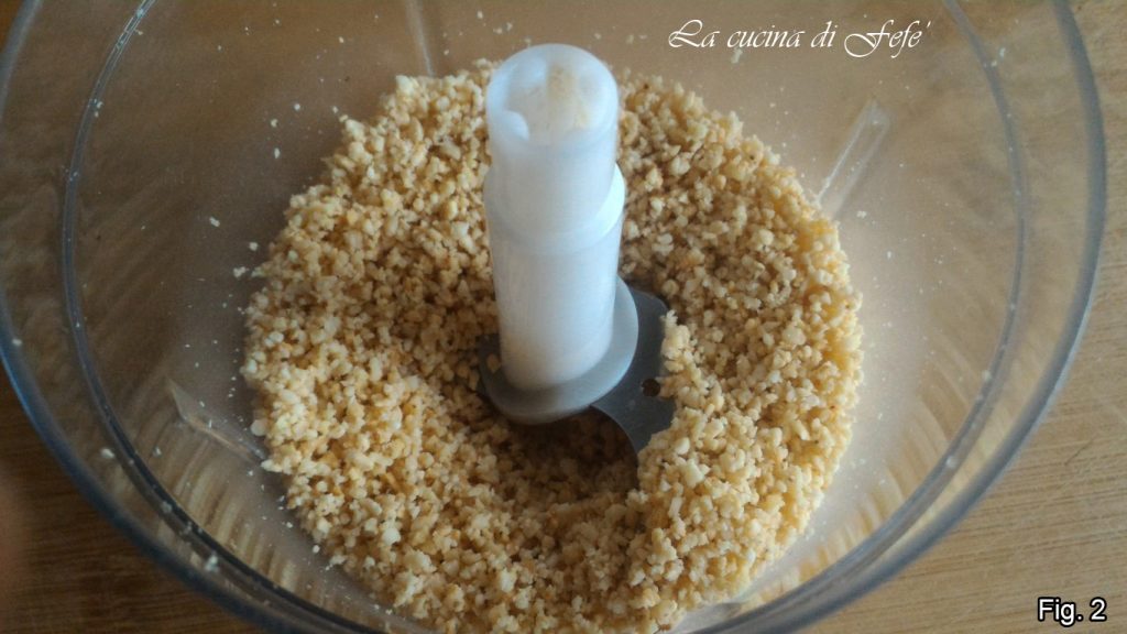 • Hak ze in meerdere keren tot bijna meel. Zet opzij (fig. 2).