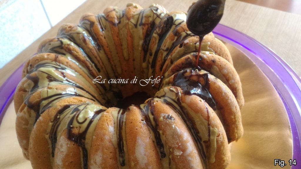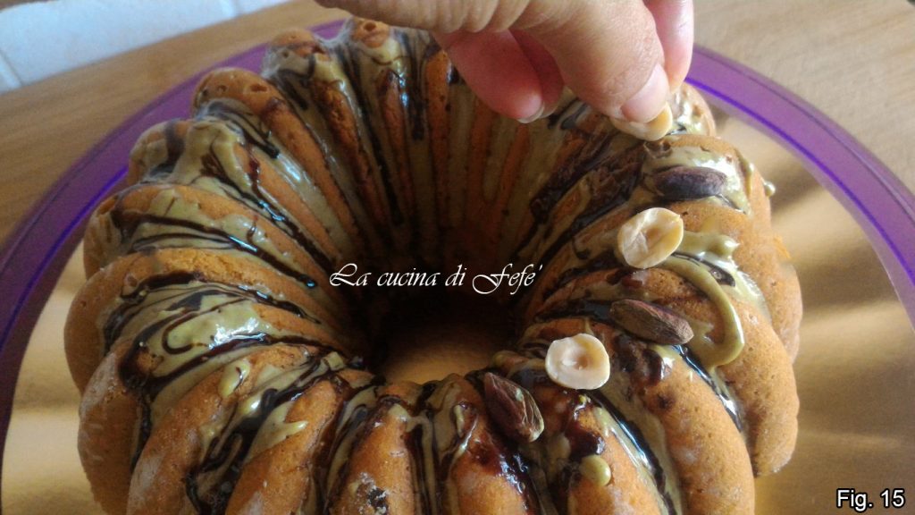 • Laat volledig afkoelen op kamertemperatuur voordat je de bundtcake uit de vorm haalt, en garneer dan naar wens met pistachepasta (fig. 13).