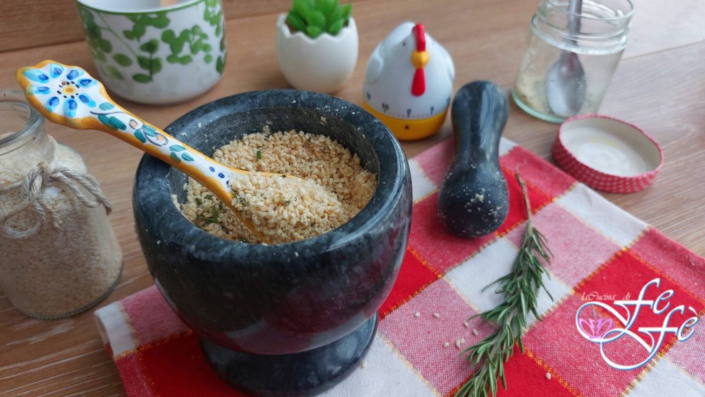 Het belangrijkste is om het alleen rauw te gebruiken en nooit tijdens het koken, omdat sesam gevoelig is voor hitte. Gomasio is gemakkelijk verkrijgbaar in biologische winkels of etnische markten. Maar de laatste tijd is de verspreiding ervan zo groot, vooral in de veganistische keuken, dat het zelfs in de grote distributie verkrijgbaar is. Maar wist je dat je gomasio ook gemakkelijk thuis kunt maken? En het is zeker goedkoper en heel gemakkelijk te maken. Je hebt alleen een goede vijzel en stamper nodig, een paar minuten geduld en het is klaar! In het recept vind je de verhoudingen op basis van je behoeften!