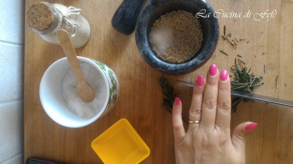 Voeg het zout toe en hak ondertussen de verse rozemarijn fijn met een mes***.