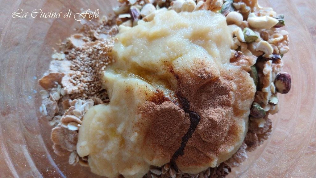 Zoet met de appel en banaan puree. Ik gebruikte voor het gemak een kant-en-klare, maar je kunt de benodigde hoeveelheid fruit in een blender pureren tot je dezelfde consistentie hebt.