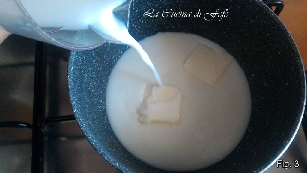 Smelt de boter met de melk in een steelpan op laag vuur (fig. 3).