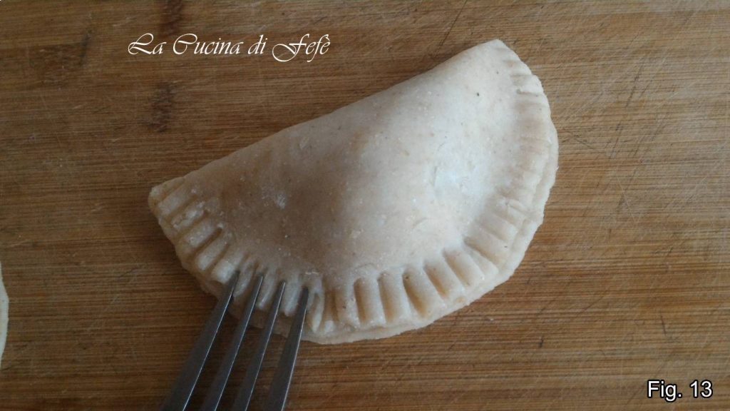 Verzegel de randen met de tanden van een vork en ga zo door totdat alle ingrediënten op zijn (fig. 13).