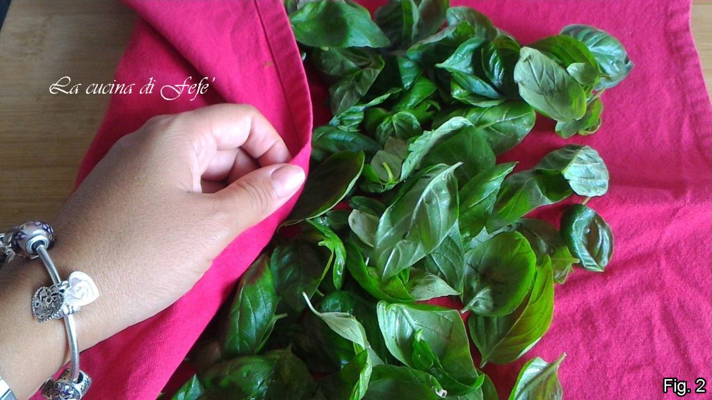 Begin met het bereiden van uw pesto door de verse basilicumblaadjes grondig te wassen onder stromend water en de stelen en vergeelde bladeren te verwijderen.