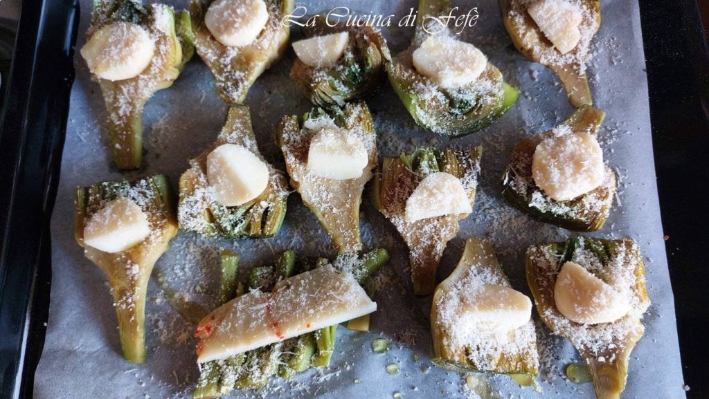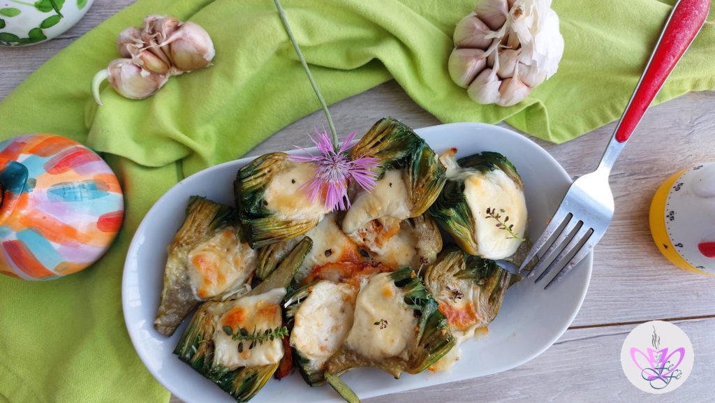 In dit recept vind je gerookte scamorza en royaal geraspte Parmezaanse kaas die een uitstekende zoute toets geven en de karakteristieke smaak van de artisjok benadrukken zonder te overheersen. Natuurlijk kun je deze vervangen door een kaas die je voorkeur heeft. Mijn man is er dol op; mijn schoonmoeder maakt ze soms met variaties die ik je onderaan het recept zal vertellen zodat je ze telkens anders kunt serveren en het hele gezin of je kieskeurige gasten kunt veroveren!