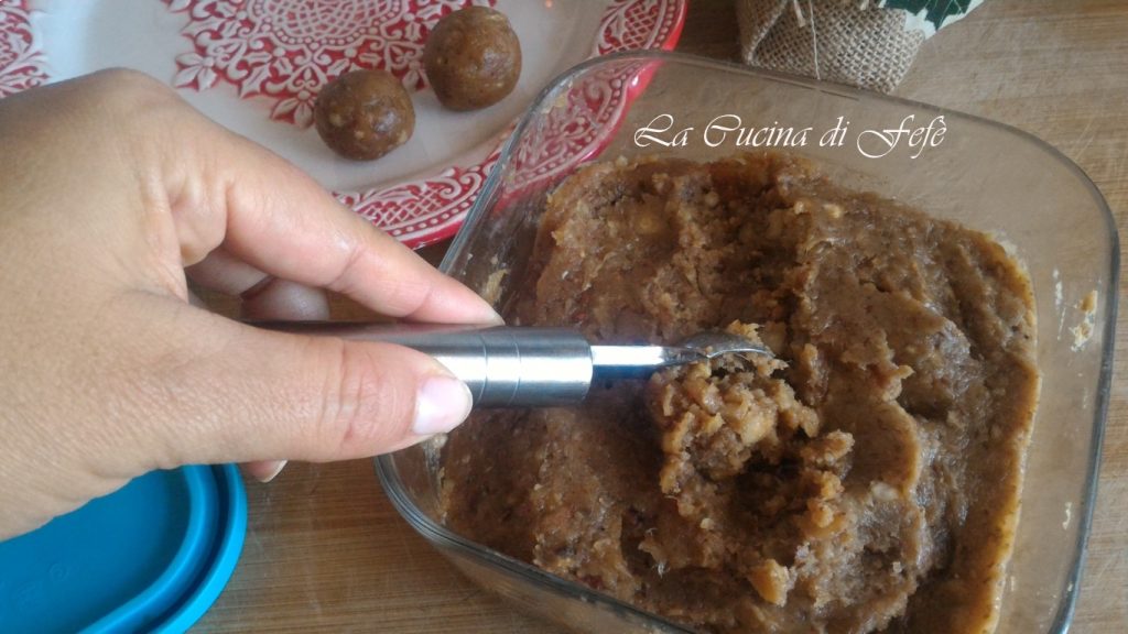 Na deze tijd, neem met behulp van een uitsteeklepel kleine porties van het mengsel ter grootte van een walnoot.