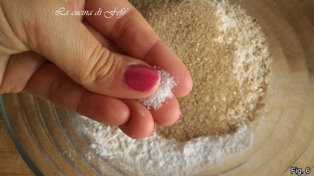 Voeg ook de rietsuiker, een snufje zout toe en meng (fig. 6).