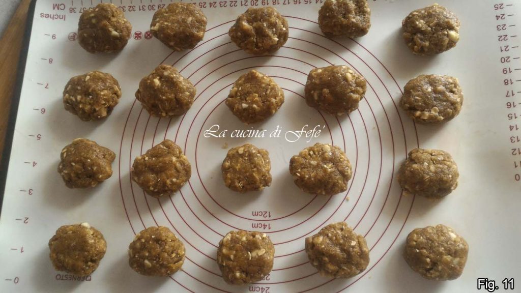 Leg ze goed gespreid op een bakplaat bekleed met bakpapier en laat baken in een voorverwarmde statische oven op 180°C voor ongeveer 15′-18′, maar controleer altijd op basis van de kracht van je oven (fig. 11).