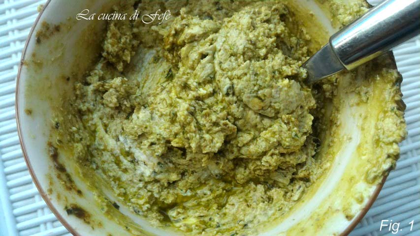 Ondertussen, in een kom, meng de pesto met de smeerkaas totdat de twee crèmes homogeen zijn samengesmolten.