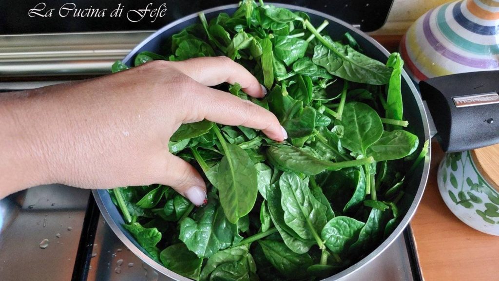 Om de gevulde filodeegrol met spinazie te maken, was de spinazie grondig onder stromend water. Als je bevroren spinazie gebruikt, laat ze dan ontdooien.