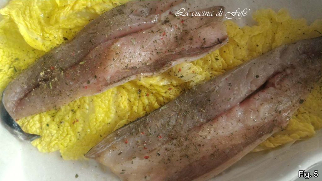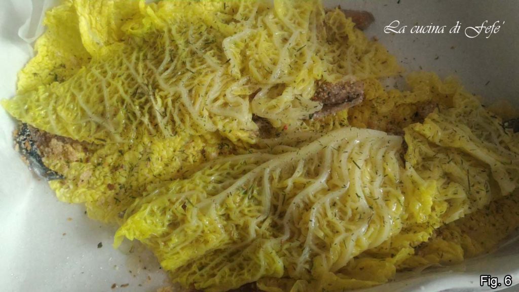 • Bedek elk filet met een tweede savooikoolblad zodat er een soort pakketje ontstaat waarin de filets garen. Voeg extra kruiden toe en kruid nogmaals met zout, besprenkel vervolgens het oppervlak met een schenking olijfolie en zet in een voorverwarmde oven op 180°C gedurende 20-25 minuten.