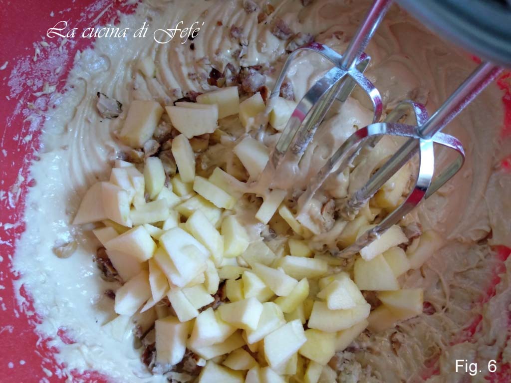 Voeg ze toe aan het beslag en giet alles in de eerder ingevette bakvorm (fig. 6).