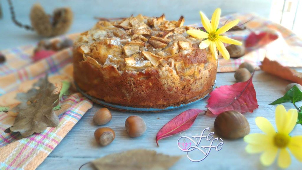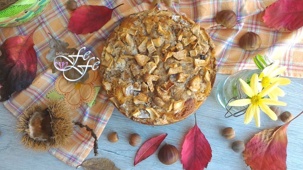 Ik moet bekennen dat mijn dokter me een paar weken geleden bepaalde voedingsmiddelen heeft verboden die voor mij essentieel waren, zoals koffie en chocolade! Stel je voor hoe moeilijk het is om ’s ochtends op te staan en niet meer te kunnen genieten van de gebruikelijke cappuccino of om geen chocoladedesserts te kunnen bereiden!!! Ik dacht dat ik geen troost zou vinden buiten datgene wat mijn lichaam op dit moment onverklaarbaar afwijst! Maar dat is niet zo, er is altijd een alternatieve manier om je voldaan te voelen ondanks de beperkingen. Deze taart is het meest tastbare voorbeeld! Het is een mini cake, en gezien de sluitingsperiode en weinig sociaal leven, is het echt de meest praktische oplossing voor mensen zoals ik, met een vrij kleine familie! Het zou namelijk nogal duur worden om een dessert in een standaardvorm te bereiden qua verbruik. Akkoord met de zoetigheid, maar een grote taart om met zijn tweeën te delen, is misschien niet de beste manier om in vorm te blijven!!! Om nog maar te zwijgen van het gezondheidsaspect! In plaats daarvan maak je deze mini cakes in een mum van tijd en zijn ze snel op, zodat je af en toe van een lekkernij kunt genieten zonder rampzalige overdaad! Deze is specifiek ongelooflijk lekker! Het is niet de klassieke appeltaart, want er zit veel meer in!!! Je vindt er ook gehakte geroosterde hazelnoten, stukjes geroosterde kastanjes en heel veel kaneel in, met een afsluitende topping om letterlijk je vingers bij af te likken! Mijn keuken was doordrenkt met zijn aroma en ik liet me meeslepen zonder weerstand te bieden! Als ik je nieuwsgierig heb gemaakt, probeer het dan ook!