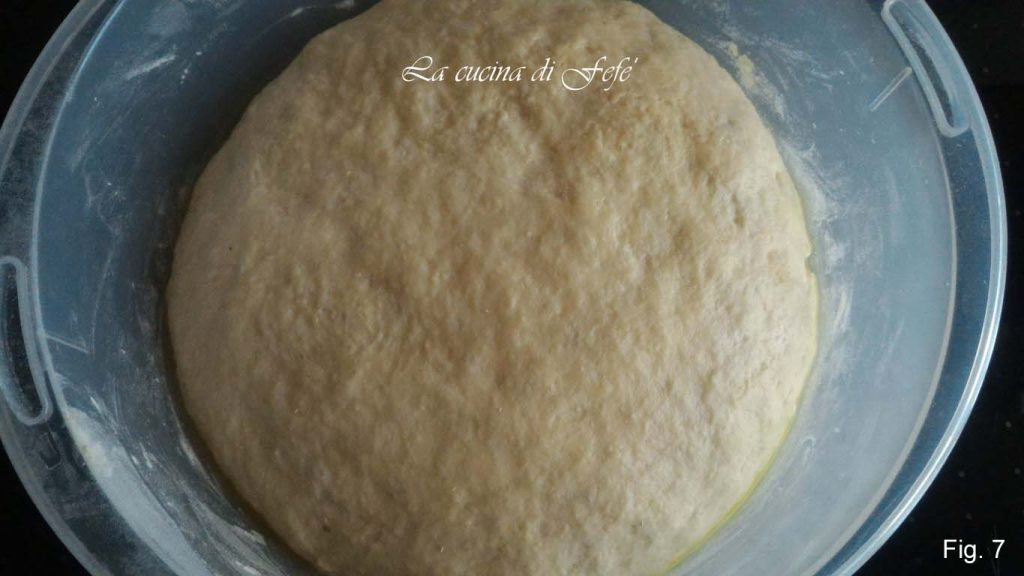 Je moet een tamelijk compact en homogeen deegbal verkrijgen. Leg deze in een goed ingevette kom en dek af met een luchtdichte deksel of een schone, droge doek.