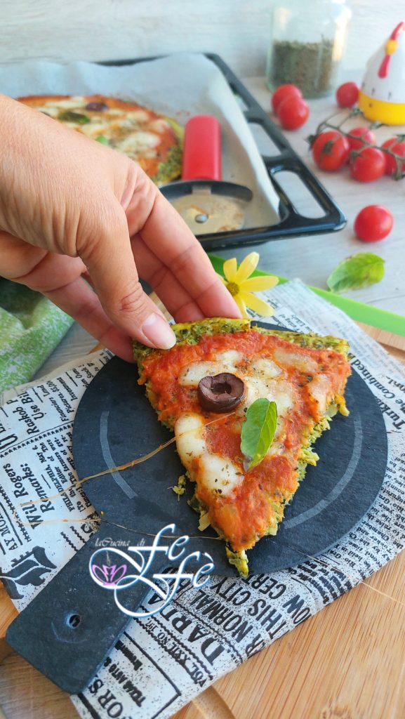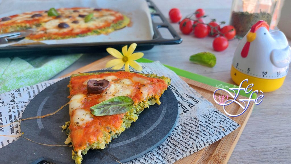 Als je net als ik altijd op zoek bent naar gezonde en authentieke recepten die ook de smaakpapillen prikkelen, dan ben je hier op de juiste plek! En hier komt de fantasie ons goed van pas, evenals de broccoli! Ik vertel je alvast dat, omdat ze tot de koolfamilie behoren, ze worden beschouwd als voedsel met onbetwiste antikanker eigenschappen. Ze bevatten namelijk een hoog percentage antioxidanten die essentieel zijn voor de gezondheid van onze botten, lever en hersenen. Bovendien vermindert hun regelmatige inname aanzienlijk het LDL-cholesterol, oftewel het slechte cholesterol ten gunste van het goede, naast triglyceriden, waarvan we weten dat ze de belangrijkste risicofactoren zijn voor hartziekten. Natuurlijk, aan de andere kant, waarderen niet iedereen deze toch wel kostbare groente, vooral kinderen niet, maar met dit recept zul je zien dat het veel gemakkelijker zal zijn om zo’n belangrijke groente in je dieet op te nemen voor gezondheid en plezier voor de smaakpapillen. Het is een slimme pizza op basis van broccoli, vegetarisch en echt laag in calorieën. Bovendien, vanwege zijn eigenschappen, is het vrij van meel en gist, dus het zal je behoorlijk verrassen! Je hoeft alleen de broccoli te mengen en ze te combineren met de rest van de ingrediënten en het geheel op een bakplaat uit te spreiden. Je krijgt de basis voor een ongewone en heerlijke pizza die je naar wens kunt verrijken. Ik stel de klassieke margherita-pizza topping voor, met tomaat en mozzarella, en de toevoeging van een paar zwarte olijven, wat fantastisch is! Zodra het klaar is, kun je het in plakjes snijden zoals je zou doen met een normale pizza en het serveren als een informele eenpansgerecht! Probeer het ook en laat het me weten!