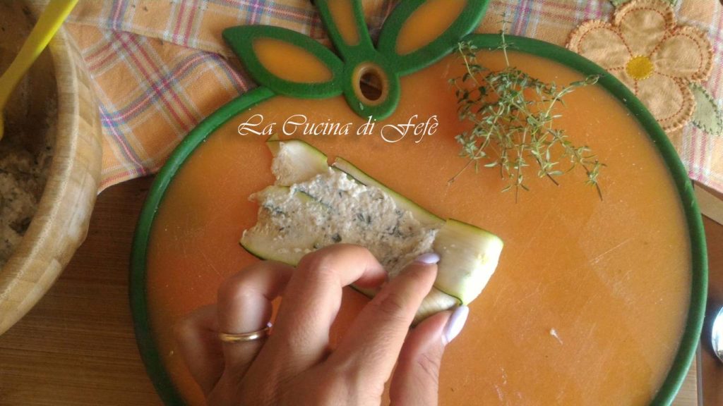 Voor mij, die niet elke dag pasta eet, was dit recept dat ik toevallig op sociale media vond en afkomstig is van een zeer bekende blog, een doorbraak! Ja, omdat het soms, afhankelijk van je dieet, niet altijd mogelijk is om veel complexe koolhydraten te consumeren, en dan bieden andere, meer toegankelijke oplossingen zoals deze heerlijke courgetterolletjes gevuld met ricotta en, in mijn geval, een vleugje gember, uitkomst! Het recept lijkt snel te zijn, en dat is het ook, afgezien van het snijden van de courgettes in linten, wat, ik waarschuw je, als je niet handig bent en niet het juiste gereedschap hebt, veel tijd kan kosten vergeleken met traditionele sneden! De moeite zal het echter zeker waard zijn, want het eindresultaat zal zeer spectaculair zijn en om je vingers bij af te likken! Bovendien is het een eenvoudig en puur gerecht, dat in de pan wordt gekookt, dus gezien de hoge temperaturen zal het een geschenk uit de hemel zijn en voorkom je dat je de oven aanzet! Je kunt het aan vrienden en familie presenteren zoals ik deed, als alternatief voor het gebruikelijke pastagerecht of als smakelijk voorgerecht, zelfs koud, samen met een aperitief! Bovendien zal het ook een rijke en smakelijke vegetarische tweede gang zijn, met een tomatensaus die perfect is voor de ‘scarpetta’. Je zult zien dat je indruk zult maken! Bedankt aan Viviana Dal Pozzo voor dit heerlijke recept!