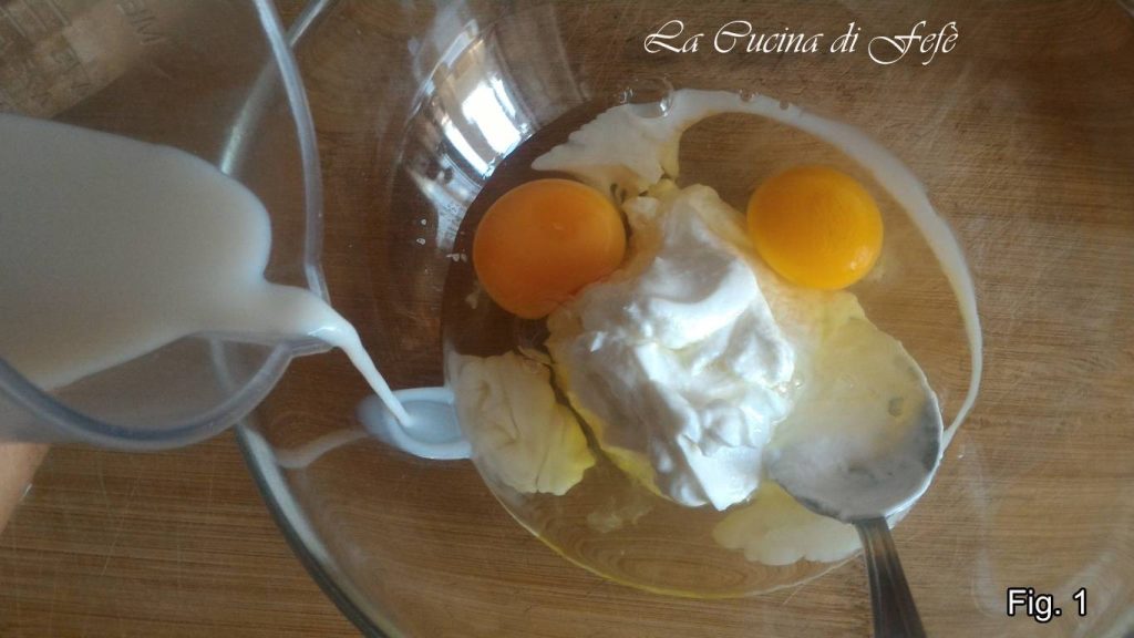 Begin met het samenvoegen van de yoghurt, het ei en de melk in een kom (fig. 1).