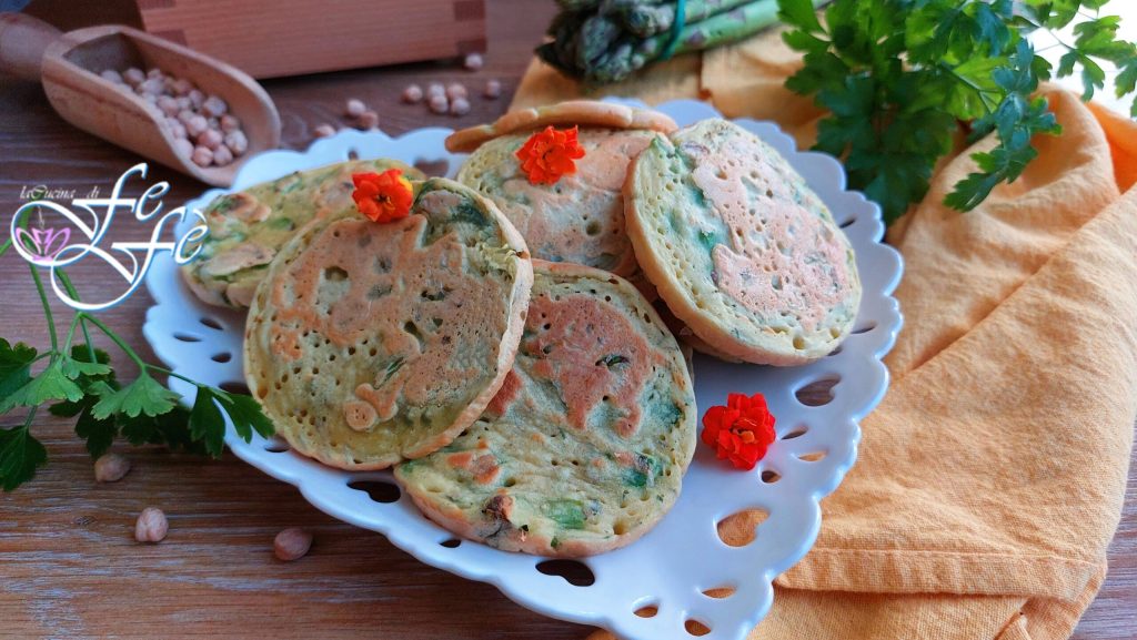 De panceci zijn echt simpele en heerlijke vegan pannenkoeken, gemaakt met kikkererwtenmeel. Ik heb ze zo genoemd omdat ik dankzij mijn praktische pan met vier compartimenten een perfect ronde vorm krijg, die een beetje doet denken aan pannenkoeken! Noem ze gerust omeletjes, pannenkoekjes, de essentie verandert niet! Uiteraard kunnen ze ook zonder deze pan worden gemaakt, je hoeft alleen een uitsteekvormpje te gebruiken of een kleine soeplepel in een crêpepan te gieten en zo ook onregelmatige vormen te creëren. Ik heb ze bereid met asperges, in het bijzonder reinigende en diuretische voorjaarsgroenten, die ons lichaam helpen om gifstoffen en overtollige vloeistoffen af te voeren. Naast dat ze bijzonder gezond en caloriearm zijn, zijn ze ook seizoensgebonden, dus met dit recept krijg je een boost van vitamines, vezels en antioxidanten! Ze zijn perfect om te genieten als een veganistisch eiwitrijk hoofdgerecht, zeer licht en vullend, vergezeld van een frisse salade of gegrilde groenten of andere gestoomde asperges. Geweldig als fingerfood voor een informeel voorgerecht of voor een eenvoudige borrel met vrienden. Probeer ze met andere soorten groenten, misschien door ze allemaal samen op tafel te presenteren op een indrukwekkende manier, zodat elke gast kan kiezen wat hij/zij het lekkerst vindt!