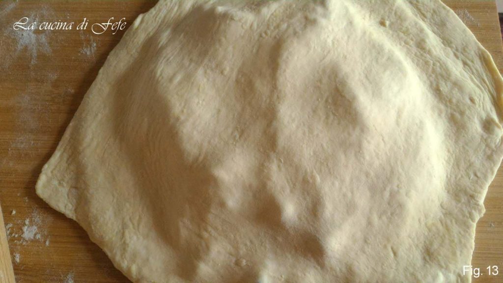 Controleer de gaarheid van de focaccia goed, zodra deze goudbruin is, draai je hem om met behulp van het deksel zelf, door hem erop te laten glijden en vervolgens om te draaien (fig. 16).