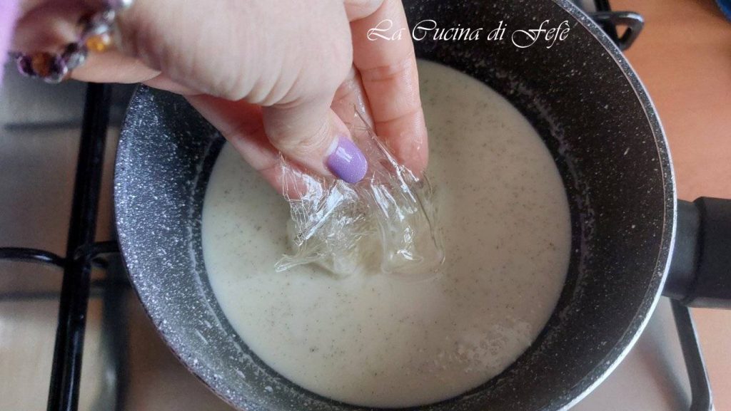 🟣Om de panna cotta te aromatiseren, kun je ook de zaden van de vanillepeul gebruiken. In dat geval moet je de peul in de lengte snijden en de zaden met de punt van een mes verwijderen, of, als je de voorkeur geeft aan een meer citrusachtige toets, kun je ook citroen- of sinaasappelschil zonder behandelingen gebruiken.