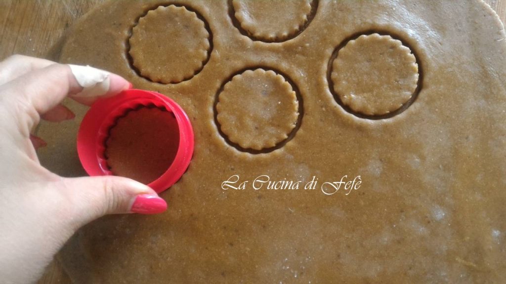 Rol uit met een deegroller op een licht bebloemd oppervlak tot een dikte van ongeveer 3-4 mm en gebruik een uitsteekvorm voor koekjes Ø 5,5 cm om een even aantal cirkels uit te steken. De helft van de cirkels dienen als basis voor je koekjes.