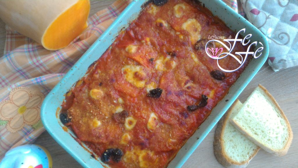 En na het succes van de savooikool parmigiana, kon ik het seizoen van herfst- en wintergroenten niet afsluiten zonder nog een ander geslaagd experiment in de keuken met jullie te delen! De zoveelste variant van de klassieke aubergine parmigiana. Dit keer is het de beurt aan pompoen, specifiek het Butternut-type, zo zoet en smaakvol, maar vooral veelzijdig dankzij zijn typische peervorm, die het perfecte snijden van de plakjes mogelijk maakt. Je kunt je niet voorstellen hoe heerlijk deze versie is, bovendien echt gemakkelijk en snel te bereiden, omdat alle ingrediënten rauw worden samengevoegd. Een groot voordeel, nietwaar? Het belangrijkste is dat de pompoenschijfjes heel dun zijn, verder is het een fluitje van een cent om het te maken. Het is de perfecte redder in nood voor een diner, zelfs als je laat thuiskomt van het werk en echt weinig tijd hebt om in de keuken door te brengen! Geweldig als hoofdgerecht bij het avondeten, ook echt heerlijk om koud te eten in blokjes gesneden tijdens een buffet, mee te nemen naar kantoor of als hoofdgerecht voor een eenvoudige lunch in de buitenlucht, tijdens een picknick met vrienden of waar je maar wilt. Zoals met alle andere versies kan je het personaliseren door aan te passen aan de smaak van het hele gezin, en als het eenmaal uit de oven komt, zul je letterlijk je vingers aflikken!