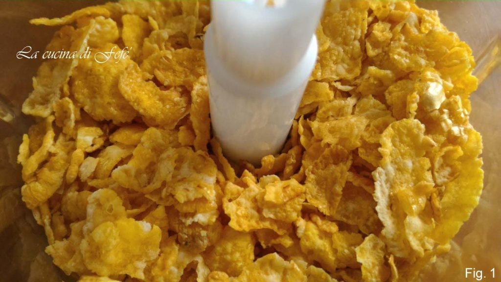 Begin met het voorbereiden van de basis voor de panering: hak de cornflakes enkele seconden in de hakmolen en zet apart.