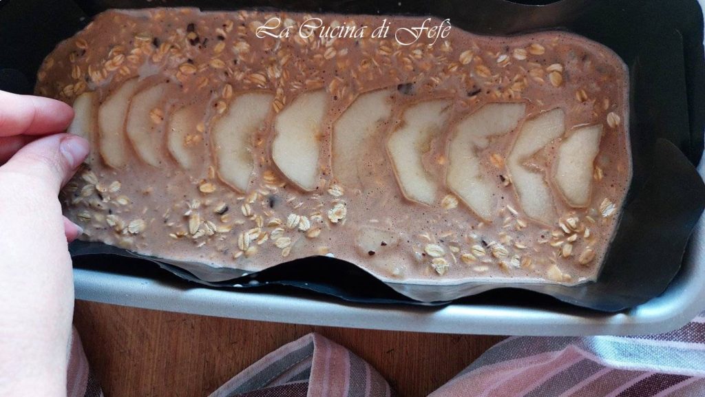Doe het in een plumcakevorm 25×11 bekleed met bakpapier of recyclebaar teflonpapier en strijk glad met een spatel. Leg tenslotte enkele dunne perenplakjes die je apart hebt gehouden op het oppervlak voordat je bakt. Bak in een voorverwarmde oven op 190°C gedurende 50′-55′. De satéprikker-test doet altijd uitslag****.