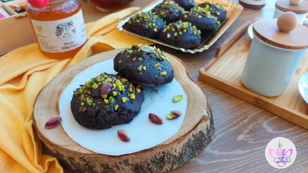 Dit jaar ben ik er eindelijk in geslaagd om de beroemde Rame di Napoli te maken, die ondanks hun naam eigenlijk typische Catalaanse zoetigheden zijn, normaal geconsumeerd vanaf Allerheiligen en tijdens de Herdenking van de doden tot aan de Kerstperiode! Het recept voor deze prachtige zachte en kruidige koekjes, is te danken aan een vriend van mij, een banketbakker uit de omgeving van Mascali, die het me drie jaar geleden gaf. Echter, om verschillende redenen die ik hier niet zal opsommen, heb ik pas dit jaar de gelegenheid gehad om het op de blog te delen! Nou, beter laat dan nooit! Als je nog nooit op Sicilië bent geweest, en dus niet de kans hebt gehad om ze te proeven, zul je met dit recept het geluk hebben om te genieten van cacaozoetigheden, super aromatisch en bedekt met een pure chocoladeglazuur en pistachegranulaat waar je dol op zult zijn! Het verhaal van dit iconische koekje is volgens de meest geaccepteerde uitleg gekoppeld aan de bereiding ervan door een Catalaanse banketbakker ter viering van de speciale munt in koperlegering, geïntroduceerd in 1816 met de Eenwording van het Koninkrijk der Beide Siciliën onder de Bourbons, waarvan Napels de hoofdstad was! Andere hypotheses doen vandaag de ronde, maar wat hun oorsprong en de reden voor hun naam ook moge zijn, de Rame zijn absoluut onweerstaanbaar! Hun bereiding lijkt misschien onmogelijk, maar is in feite echt eenvoudig. Je hoeft slechts alle ingrediënten te mengen in een kom en de koekjes met de hand te vormen. Na het bakken kun je ze glazuren, met het geduld om te wachten tot de coating droog is voordat je ze allemaal opeet! Ik weet het, het is moeilijk maar het is mogelijk! Wat ik je hier aanbied, is het recept in zijn originele versie, gemaakt met Siciliaanse sinaasappelmarmelade zowel in het deeg als onder de chocoladelaag. Maar er zijn veel andere varianten die ik je later zal laten zien, die zelfs nog smakelijkere vulling bevatten, zoals die met Nutella of, mijn favorieten, met hazelnootcrème, amandelcrème en pistachecrème.