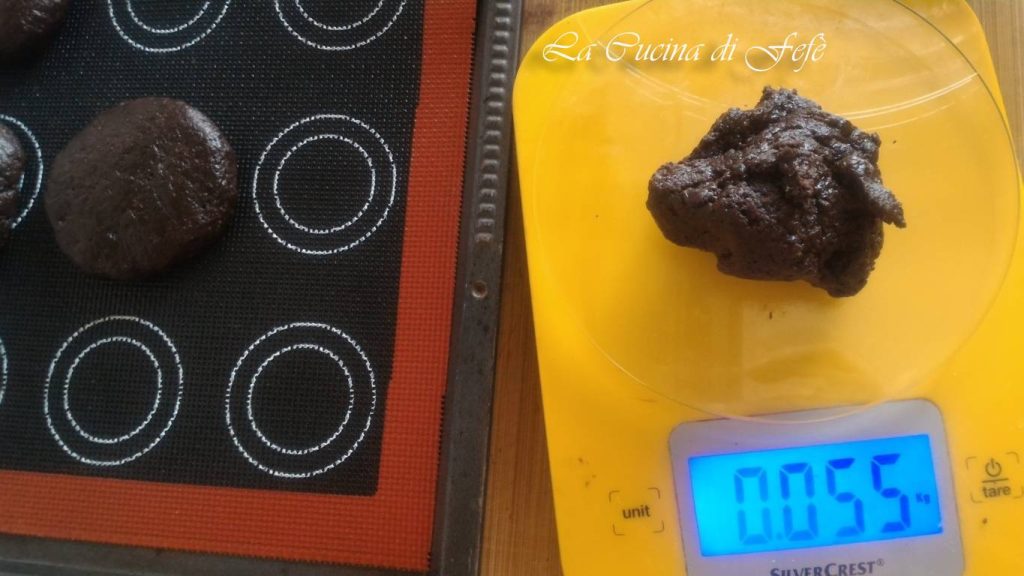 Leg ze een voor een op een bakplaat bekleed met bakpapier of een microgeperforeerde siliconen mat zoals ik heb gedaan en druk ze lichtjes plat.