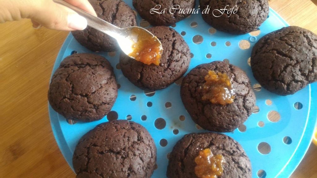 Als ze afgekoeld zijn, leg een theelepel sinaasappelmarmelade op elk koekje.