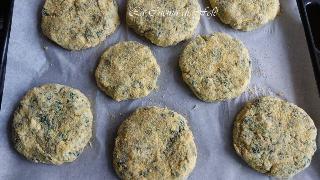 Zodra ze klaar zijn, verplaats de burgers naar een bakplaat bedekt met bakpapier en zet ze nog 20′ in de vriezer, bak ze vervolgens in een voorverwarmde heteluchtoven op 200°C voor 20′. Draai ze op dat moment om, verlaag de temperatuur naar 190°C en ga door met bakken voor nog eens 5′ in heteluchtmodus.